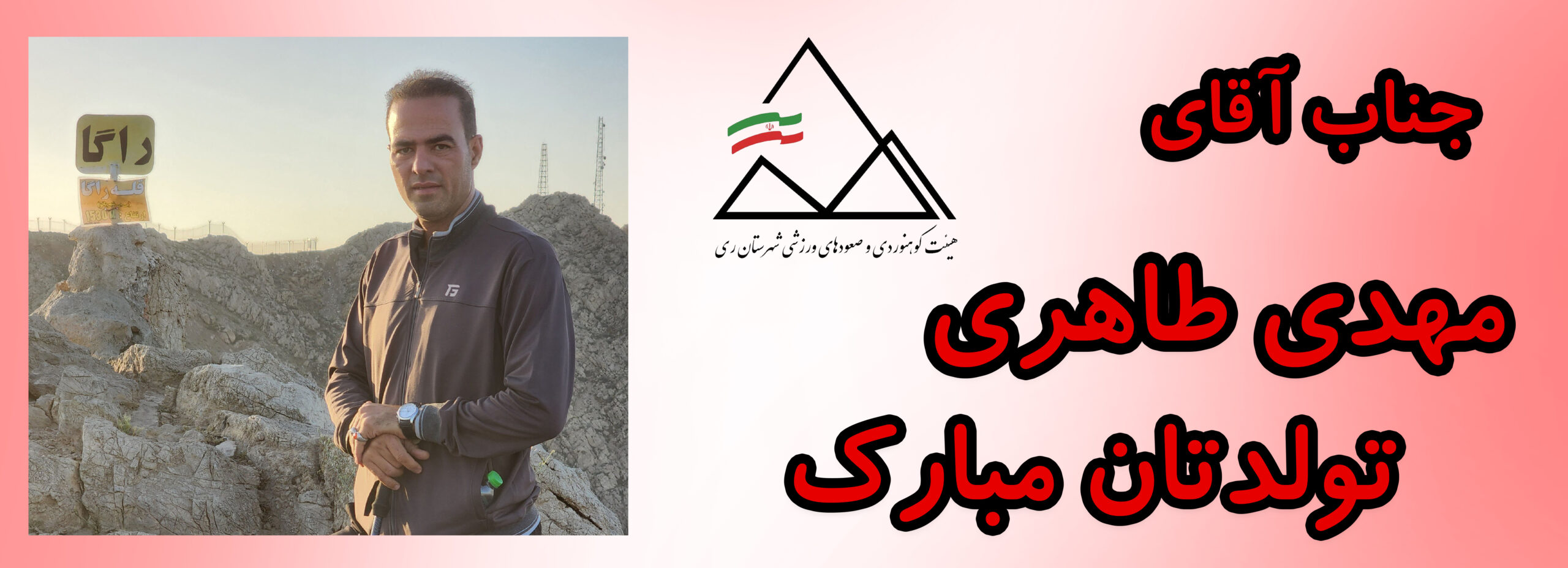 جناب آقای مهدی طاهری به تاریخ 1404/06/30 از طرف هئیت کوهنوردی و صعودهای ورزشی شهرستان ری زاد روز تولد شما را تبریک میگوییم.